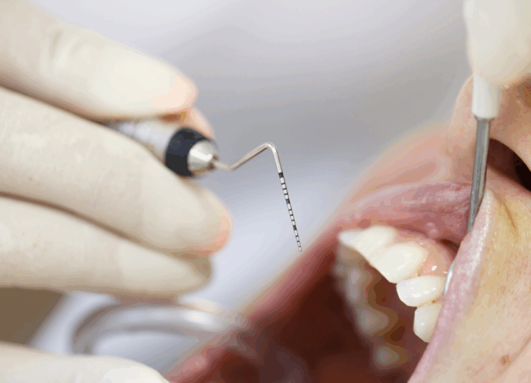 顕微鏡で根管内を拡大し、ラバーダムで無菌環境を確保。歯を抜かずに残すための精密治療です。