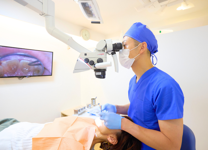 当院では歯科用CTで顎の骨や神経の位置を三次元で把握し、マイクロスコープ(歯科用顕微鏡)で治療部位を数十倍に拡大します。