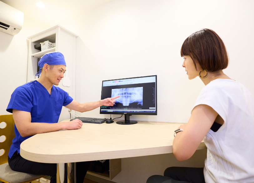 口腔内写真やCT画像をお見せしながら、現状と治療法を分かりやすくご説明します。